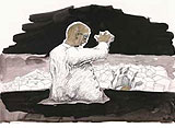 Zeichnungen seine "Giganten" als riesige Figuren in Konfrontation