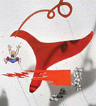 Innerhalb dieser Strukturen erscheinen comic-artig gemalte Szenen